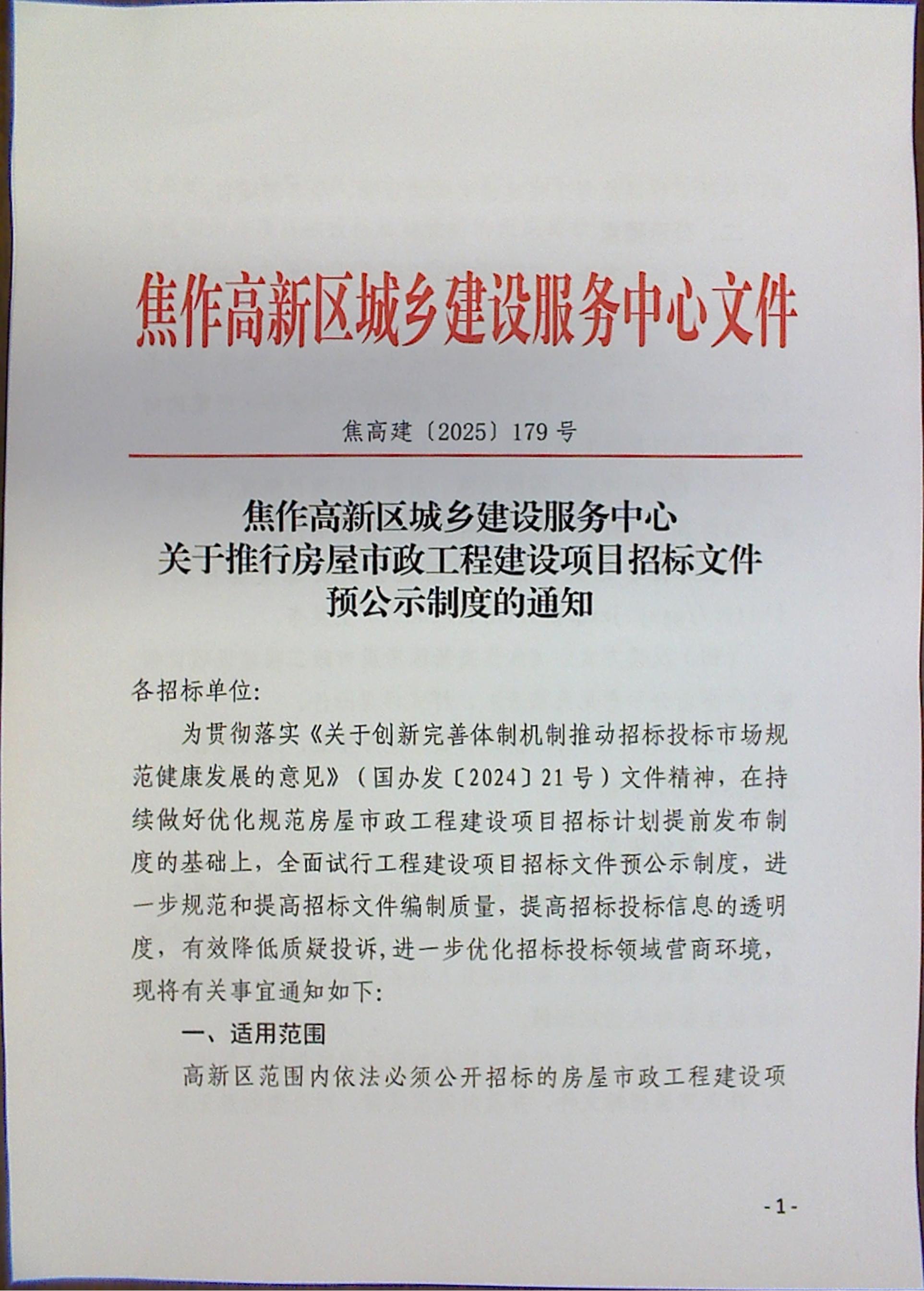 焦高建〔2025〕179号-关于推行房屋市政工程建设项目招标文件预公示制度的通知(2).pdf